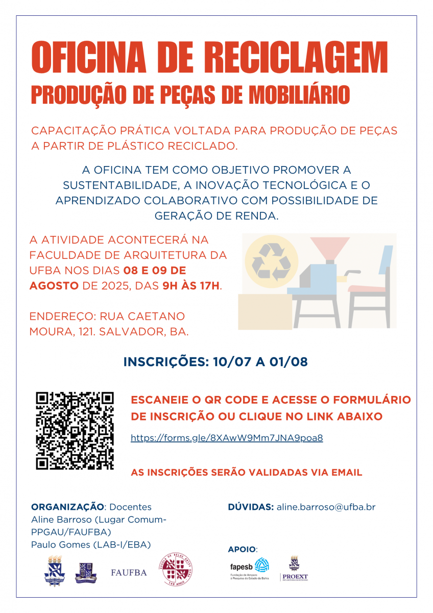 Seleção de 02 bolsas de extensão - Edital PIBIEX 2025-26 (PROEXT/UFBA) O projeto O Fabuloso Inventário da História Material das Cidades, coordenado pela Profª Gabriela Leandro Pereira (FAUFBA), está com processo seletivo aberto aberto para 02 bolsistas de extensão (Edital PIBIEX-UFBA).