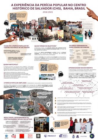 A experiência da Perícia Popular no Centro Histórico de Salvador teve início em 2016, no âmbito de um intercâmbio acadêmico – envolvendo a FAUFBA e o PPG AU/UFBA - através do grupo de pesquisa Lugar Comum -, o The Bartlett Development Planning Unit of UCL e 7 importantes movimentos, associações e coletivos urbanos de Salvador, se desdobrando nesse mesmo ano na criação de um componente curricular extensionista, a ACCS ARQB 19 Perícia Popular no Centro Histórico de Salvador, com cinco edições entre 2016 e 2023, ao longo de sete anos, ofertadas simultaneamente para estudantes de graduação e de pós-graduação.