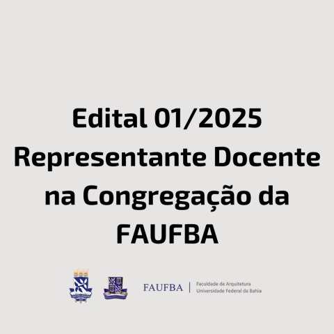 À comunidade Docente da FAUFBA. Divulgamos o Edital 01/2025 referente ao Processo Eleitoral para Representante Docente na Congregação, biênio 2025-2027. As inscrições ocorrerão entre 20 a 30/10, através do envio da "Ficha de Inscrição" de chapas (Anexo I do Edital) para o e-mail: rep.docente.faufba2025@gmail.com.