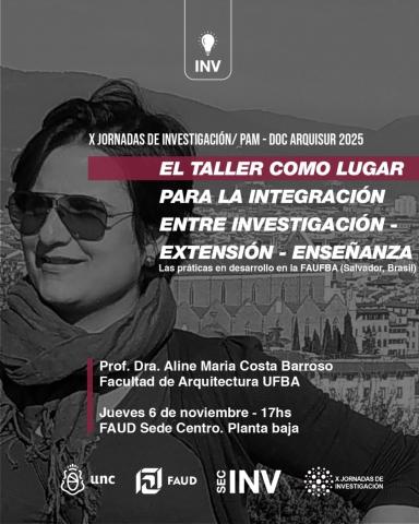 De 03 a 07 de novembro a docente FAUFBA/PPGAU Aline Barroso fará uma missão acadêmica na Faculdade de Arquitectura, Urbanismo y Diseño da Universidad Nacional de Córdoba (FAUD-UNC) integrante do Programa ARQUISUR de Mobilidade Docente (PAMDOC). Dentre as atividades da semana, a docente realizará uma mesa de discussão sobre ensino, pesquisa e extensão e a experiência da FAUFBA com a implantação do novo PPC, além de participar de uma roda de conversa sobre internacionalização e possibilidades de articulações entre as duas instituições.