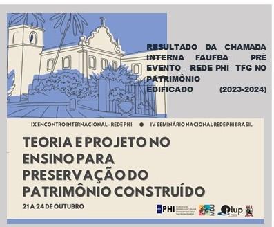 Enviado por neila.regina em ter, 09/09/2025 - 17:41 Resultado da Chamada Interna FAUFBA-Pré Evento Rede PHI-TFG no Patyrimonio Edificado Idioma Português, Brasil