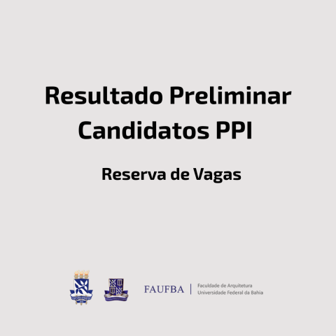 Enviado por carina em ter, 26/08/2025 - 18:37 Publicamos o resultado do processo seletivo de Estágio do Edital 02/2025 para Estágio na FAUFBA para os candidatos PPI no link abaixo: Resultado candidatos PPI Idioma Português, Brasil