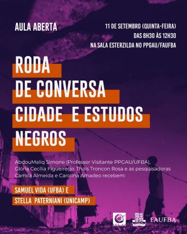 Pessoal, na quinta-feira de manhã, teremos nossa aula aberta com convidades importantes para o debate sobre cidade e estudos negros: